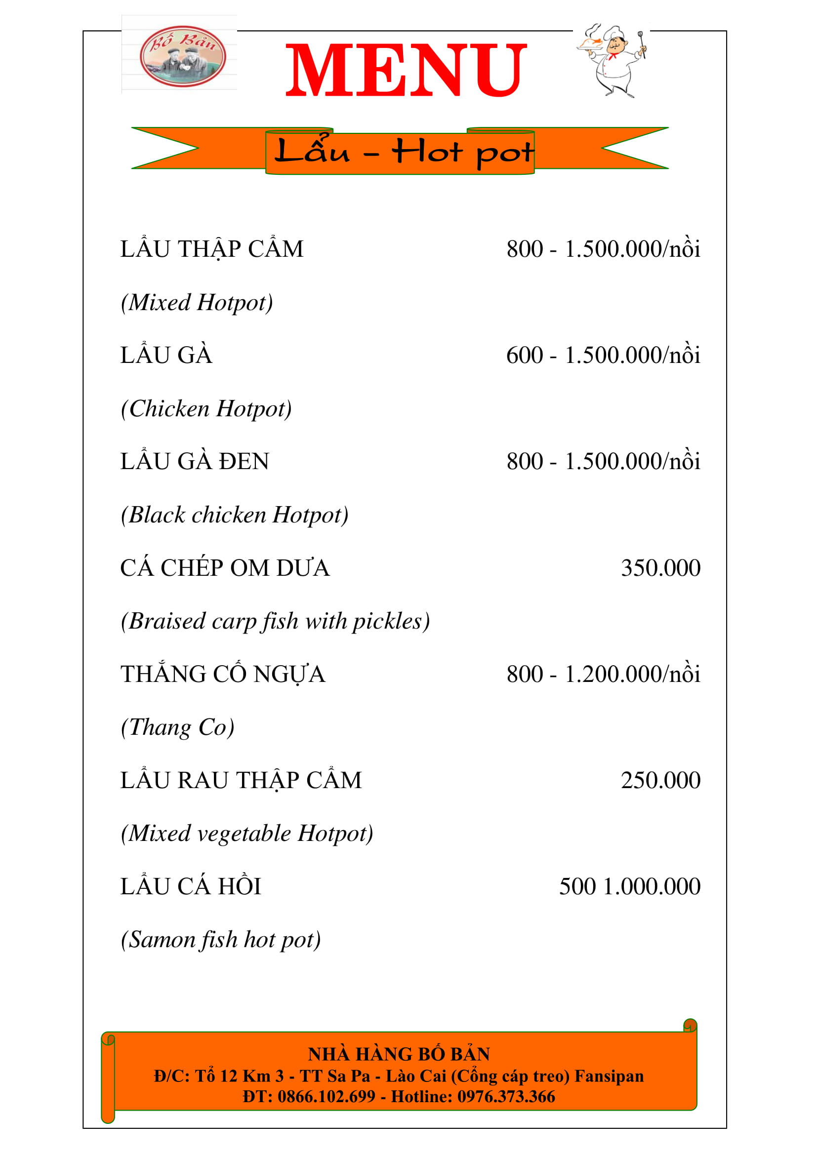 Menu Nhà hàng Bố Bản